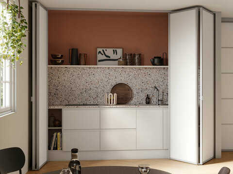 Sie mögen es lieber dezent und verdeckt, dann empfehlen wir die Pocket Door. Sie wird, wenn bauseits möglich, unsichtbar versteckt in der Wand und gibt den Zugang zur Vorratskammer oder dem Hauswirtschaftsraum auf Wunsch frei.