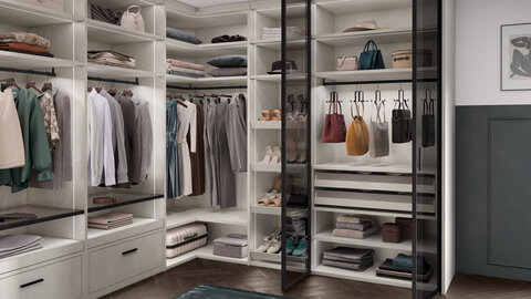 Sie können den gesamten Platz der maßgefertigten Eckschränke von gudcina nutzen. Hinzu kommt, dass Sie aus frei wählbaren Accessoires wie Soft-Close Schubfächern, LED Schrankinnenbeleuchtung, Eckböden und vielem mehr bei Ihren individuellen Konfigurationen wählen können.