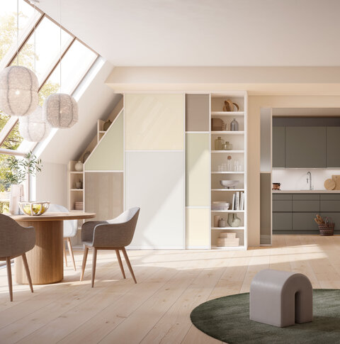 Furnish your rooms individually, we offer you limitless possibilities. With our customised folding doors, sliding doors or wardrobe systems, you have a variety of products at your disposal for personal room design.